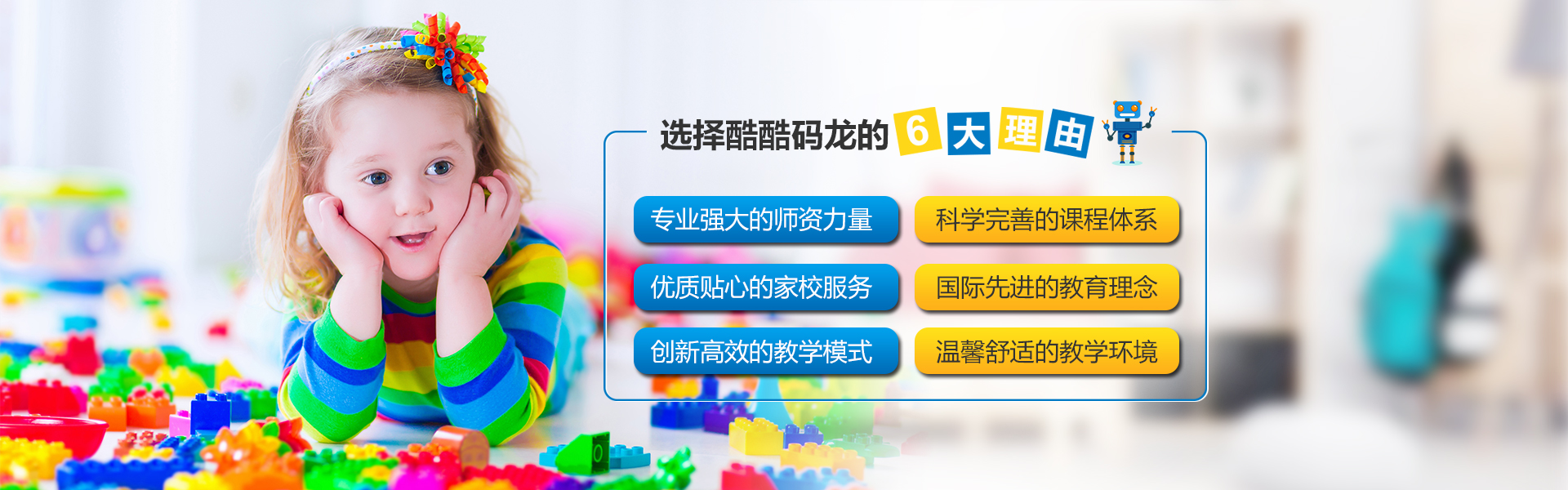 秉承“與國際接軌的機器人教育品牌”的定位,酷酷碼龍潛心研究發(fā)達國家教育體系,充分整合國內外先進的教育資源,組建了一支由業(yè)內專家組成的教育顧問團隊,建立起一整套科學完善的教學體系,形成了以樂高創(chuàng)意啟蒙、少兒編程、機器人競賽等課程為核心,集國內外大型科技賽事、科技主題游學、冬夏令營、創(chuàng)客實驗室搭建等為依托的一站式教育服務平臺,培養(yǎng)孩子的未來競爭力。我們的師資